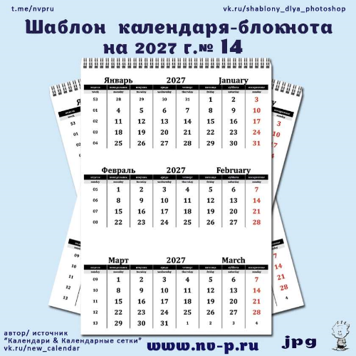 Набор готовых страниц-блоков (4 шт.) для изготовления квартального календаря-блокнота на 2027 год