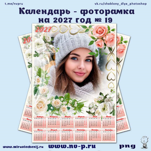 Календарь - фоторамка на 2027 год - фата и розы
