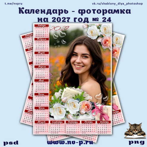 Календарь-фоторамка на 2027 год - Мелодия нежных роз (Lady Marisa + nv-p)