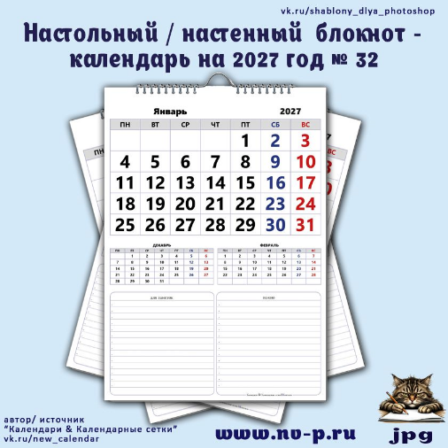 настенный/настольный блокнот-календарь на 2027 год