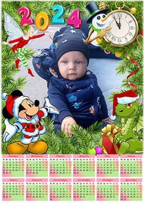 Календарь на 2024 год - Новогодний дракончик и Микки Маус