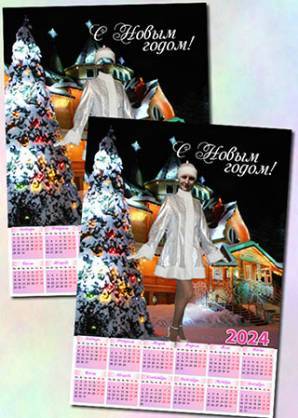 Календарь на 2024 год с шаблоном костюма снегурочки - Поздравление от снегурочки