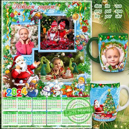 Календарь-фоторамка на 2024 год и шаблон для кружки - Пусть Новый год добро несет, и в сказку дверь откроет!
