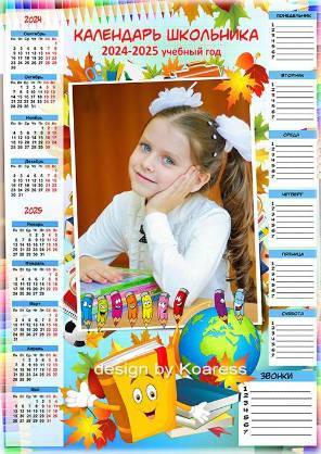 Календарь школьника на 2024-2025 год с расписанием уроков и звонков