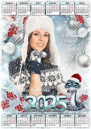 Новогодний календарь на 2025 год - Серебристый иней лег на ветки елей
