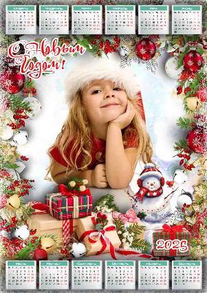 Календарь на 2025 год / рамка для фото - Снежные праздники
