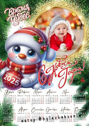 Шаблон новогоднего календаря/фоторамки на 2025 год "Время чудес"