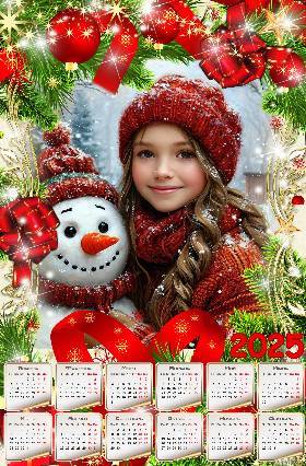 Праздничный новогодний календарь - фоторамка на 2025 год