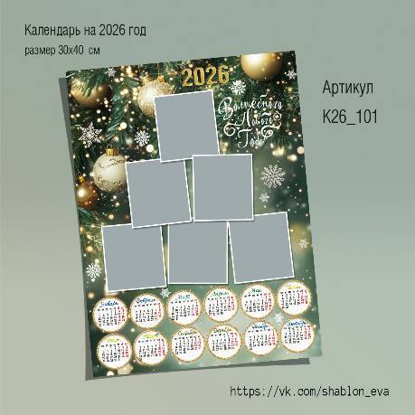 Шаблон новогоднего календаря на 2026 год с фото- елочка