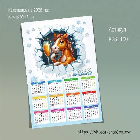 Шаблон новогоднего календаря на 2026 год с лошадкой