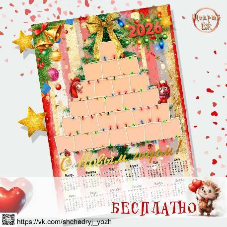 Бесплатный шаблон календаря на 2026 год на 26 фото "Елочка"