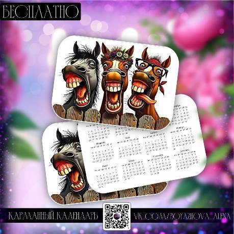 Шаблон карманного новогоднего календаря на 2026 год с веселыми лошадками