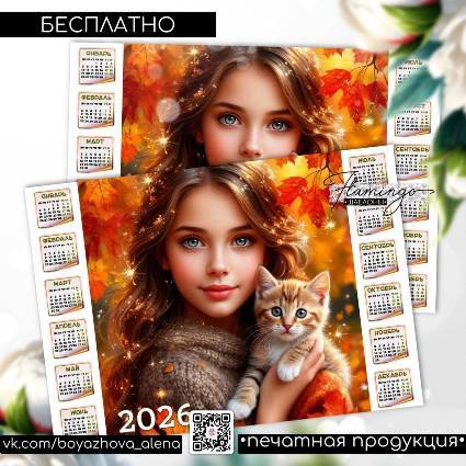 Шаблон календаря на 2026 год "Девушка с котенком"