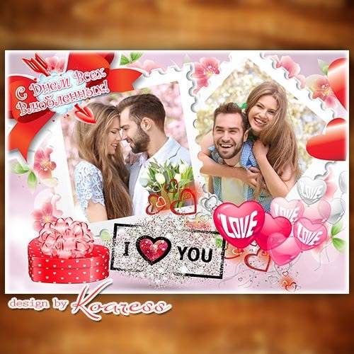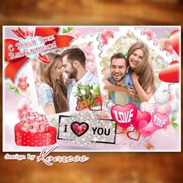 Открытка с рамкой для поздравления - Валентинка к Дню Влюбленных