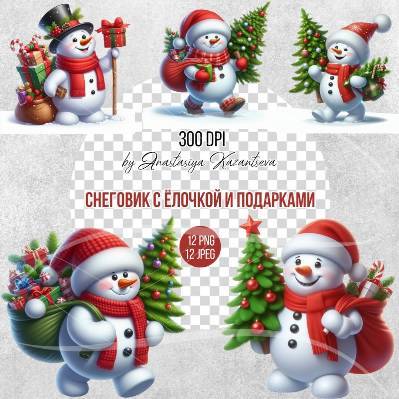 Клипарт - Снеговик с ёлочкой и подарками