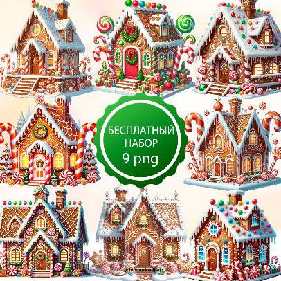 Бесплатный набор иллюстраций "Пряничный домик"