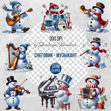 Клипарт- снеговик музыкант