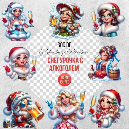 Клипарт - снегурочка с напитками