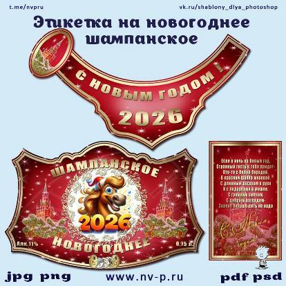 Этикетка на новогоднее шампанское 2026 с лошадью