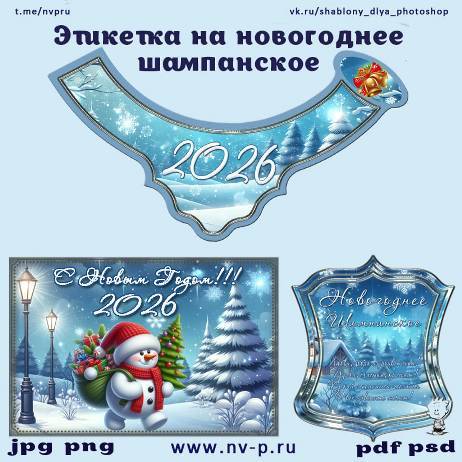 Этикетка для Новогоднего Шампанского со снеговичком.
