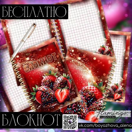Шаблон блокнота с клубничкой