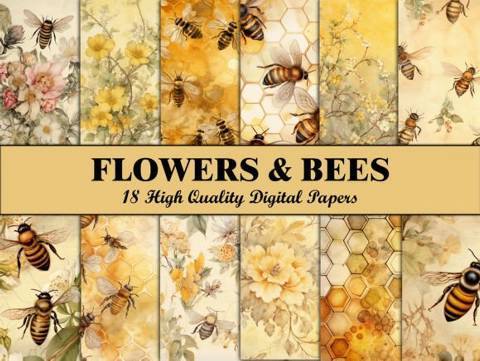 Bee-Flowers-Scrapbook-Paper-Pattern