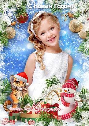 Детская фоторамка для новогодних портретов - Очаровательный тигренок