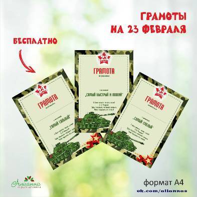 ГРАМОТЫ НА 23 ФЕВРАЛЯ
