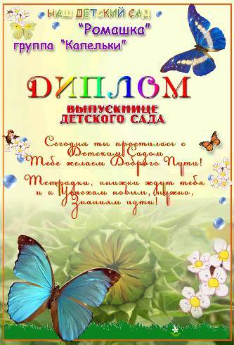 Грамоты для детей - Диплом выпускнице детского сада