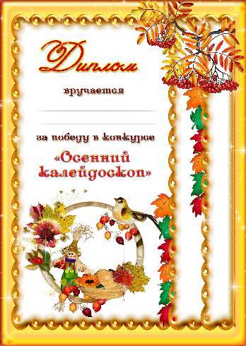 Грамоты для детей - Диплом за победу в конкурсе " Осенний калейдоскоп"