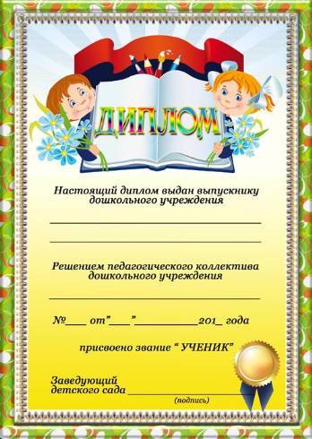 Грамоты для детей - Диплом выпускнику дошкольного учереждения