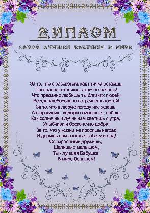 Диплом самой лучшей бабушке в мире