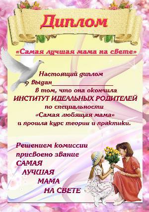 Диплом самой лучшей маме на свете