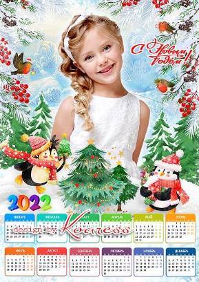 Новогодний календарь на 2022 год для фотошопа - Веселые пингвины