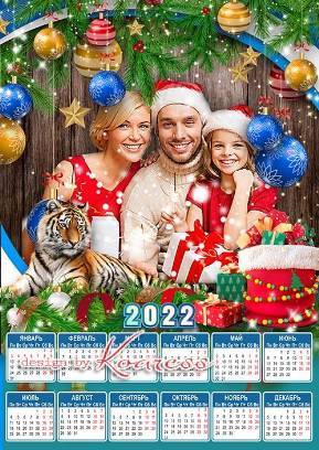 Календарь на 2022 год для фотошопа - На страже года Тигр стоит, любовь и счастье пусть хранит