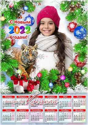 Календарь на 2022 год для фотошопа - Тигра год уже крадется по заснеженным тропинкам
