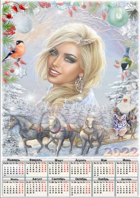 Праздничный календарь на 2022 год с рамкой для фото - Вот мчится тройка удалая