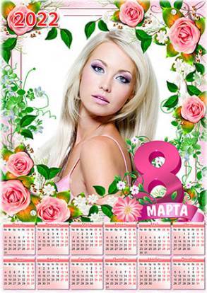 Настенный календарь на 2022 год с рамкой под фотографию - 8 марта