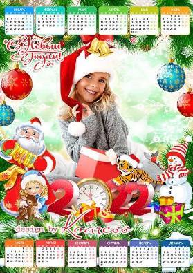 Праздничный новогодний календарь на 2022 год для детских фото - Скоро праздник к нам придет