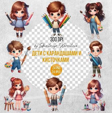 Клипарт - Дети с карандашами и кисточками