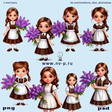 Клипарт - Девочки с сиренью (psd, png, jpg)