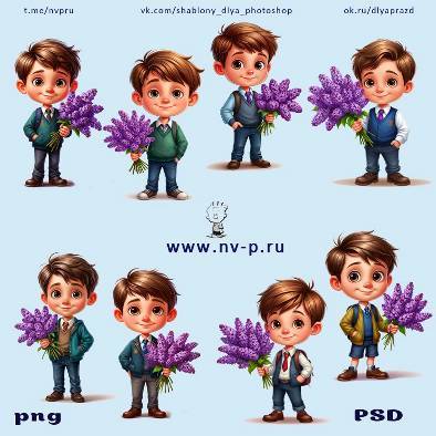 Клипарт - мальчики школьники с сиренью (psd, png, jpg)