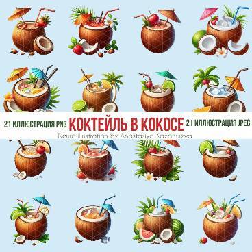 Клипарт коктейль в кокосе