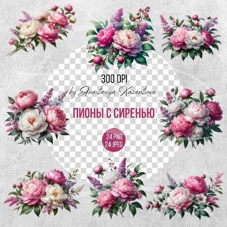 Клипарт - пионы с сиренью