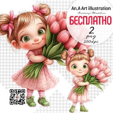 Клипарт - Девочка с букетом тюльпанов