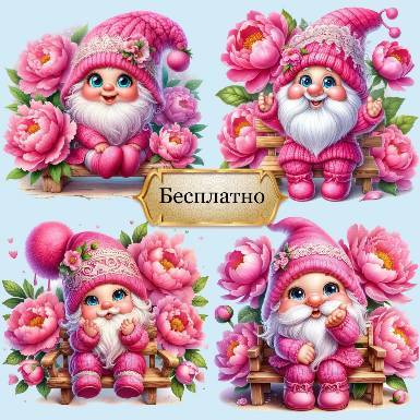 Клипарт - Гном в пионах