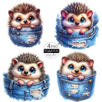Клипарт- ежики в джинсовых кармашках