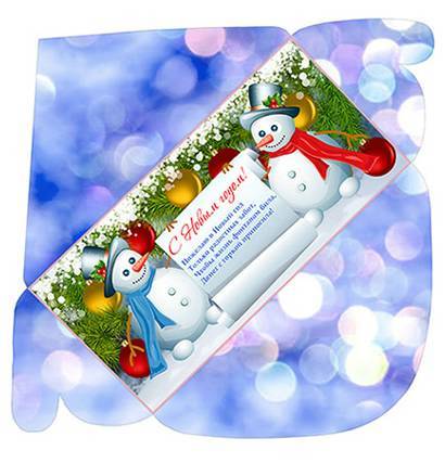 Новогодний подарочный конверт для денег - Новогодние снеговики