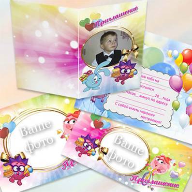 Смешарики - Пригласительная открытка на детский праздник