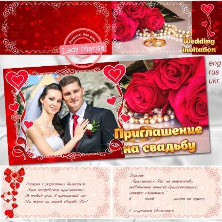 147. Свадебное приглашение - Розы и жемчуг